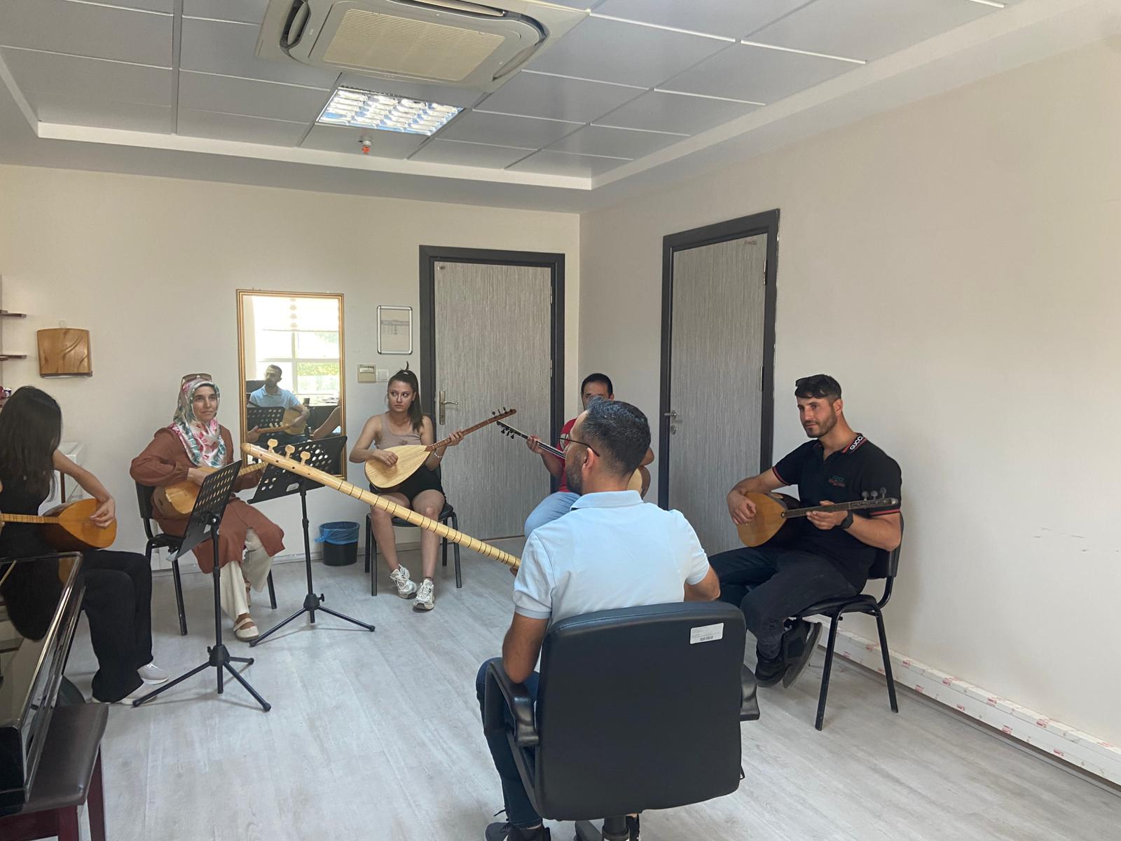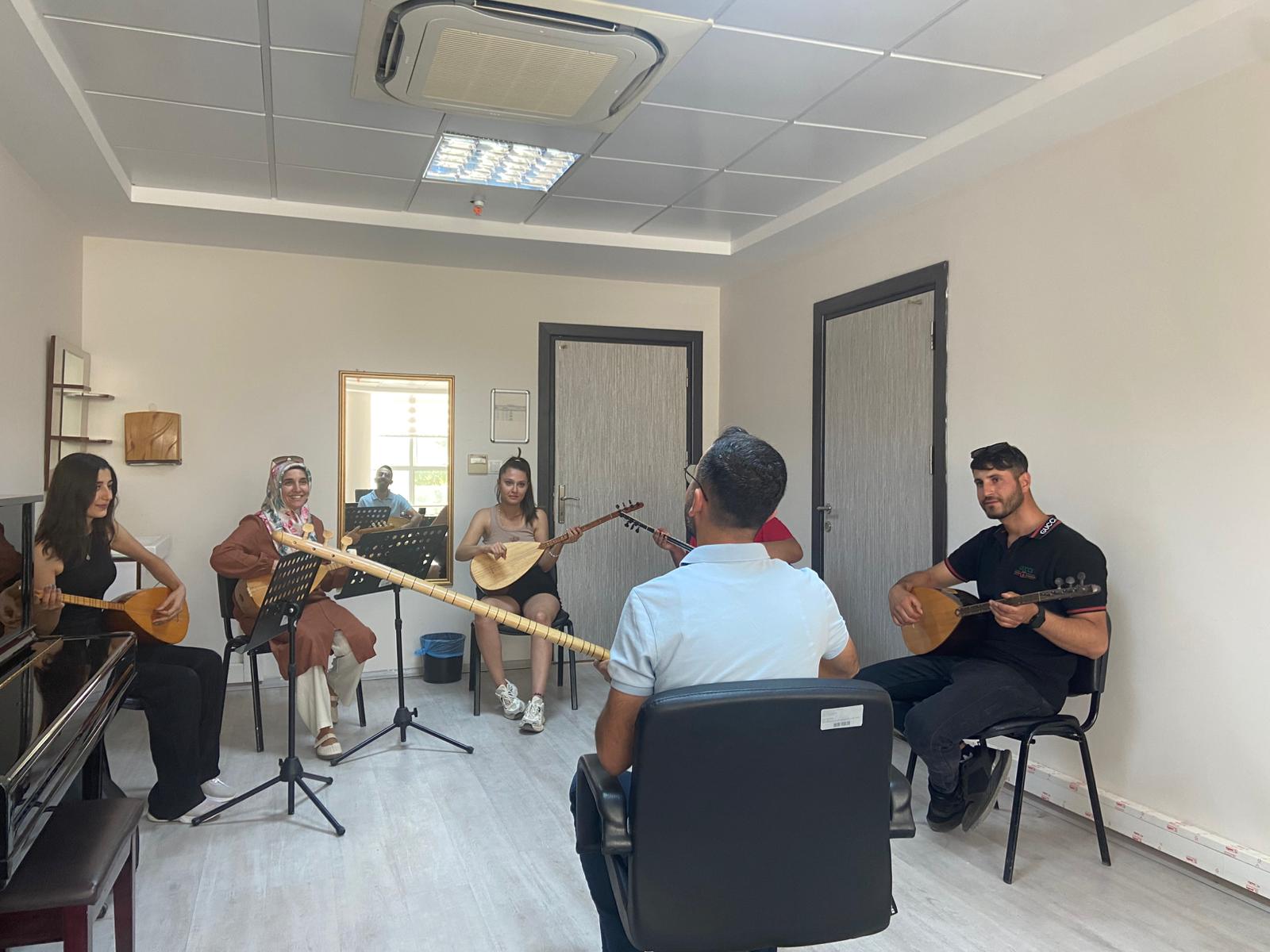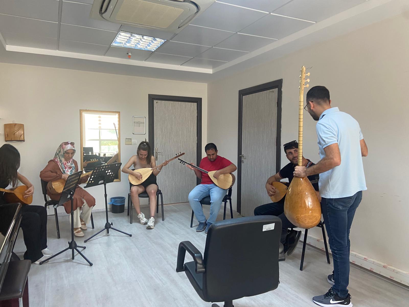 Üniversitemizde farklı bölümlerde öğrenim gören öğrenciler, alan dışı seçmeli ders kapsamında Bağlama dersini tercih ederek Türk Halk Müziği’ne olan ilgilerini sınıf ortamına taşıyor. Dr. Öğr. Üyesi Emirhan GÜLER tarafından yürütülen derste öğrenciler, bağlamanın teknik özelliklerini öğrenirken aynı zamanda birlikte çalma pratiği yaparak müzik kültürümüzün önemli bir enstrümanını yakından tanıma fırsatı buluyor. Alan dışı seçmeli dersler kapsamında açılan bağlama dersi, öğrencilerin akademik alanlarının dışında sanatsal beceriler geliştirmelerine, kültürel birikimlerini artırmalarına ve sosyal açıdan daha zengin bir üniversite deneyimi yaşamalarına katkı sağlamaktadır.